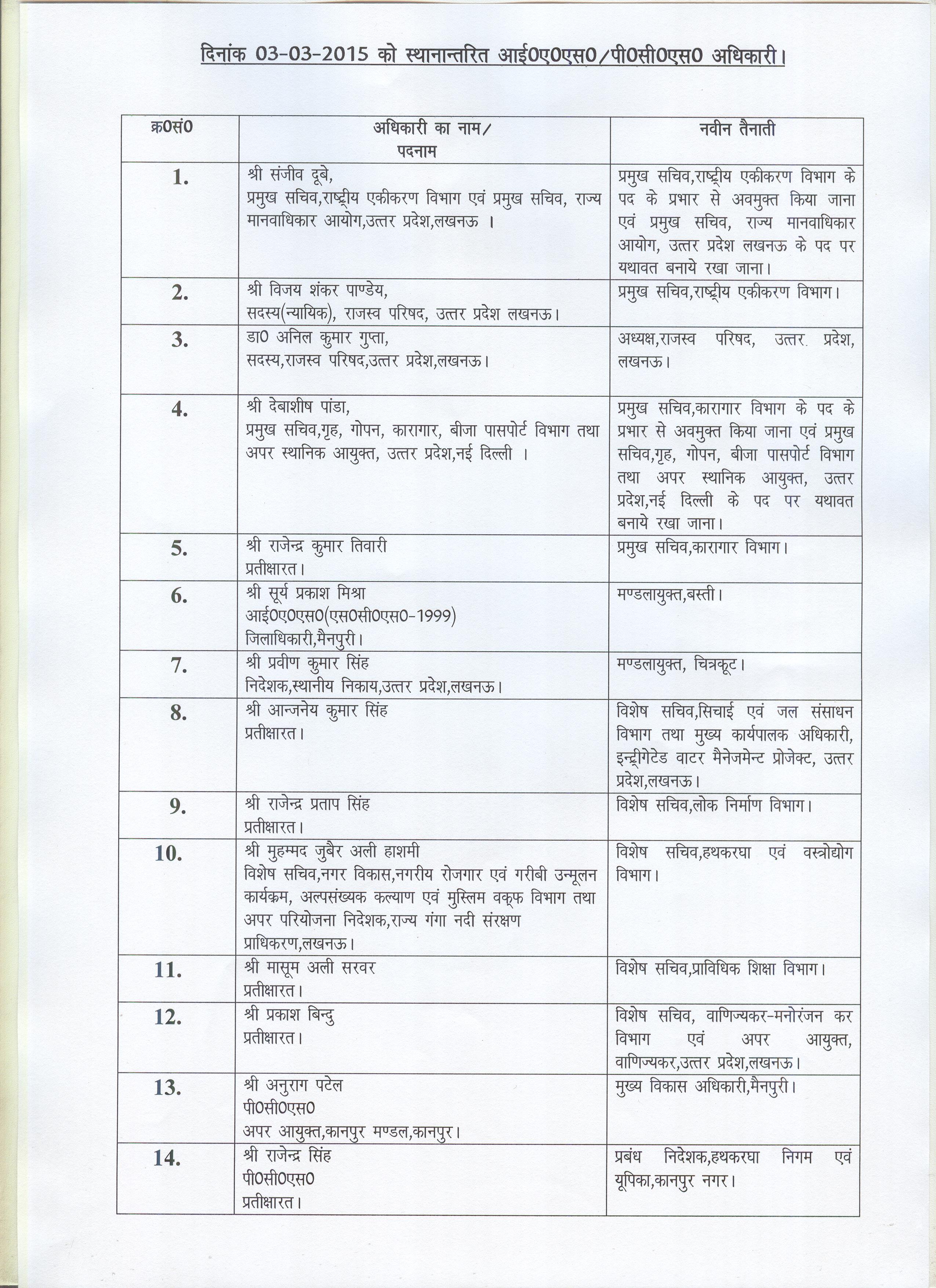 As many as 14 IAS/PCS officers have been transferred and differently posted in Uttar Pradesh. The officers are