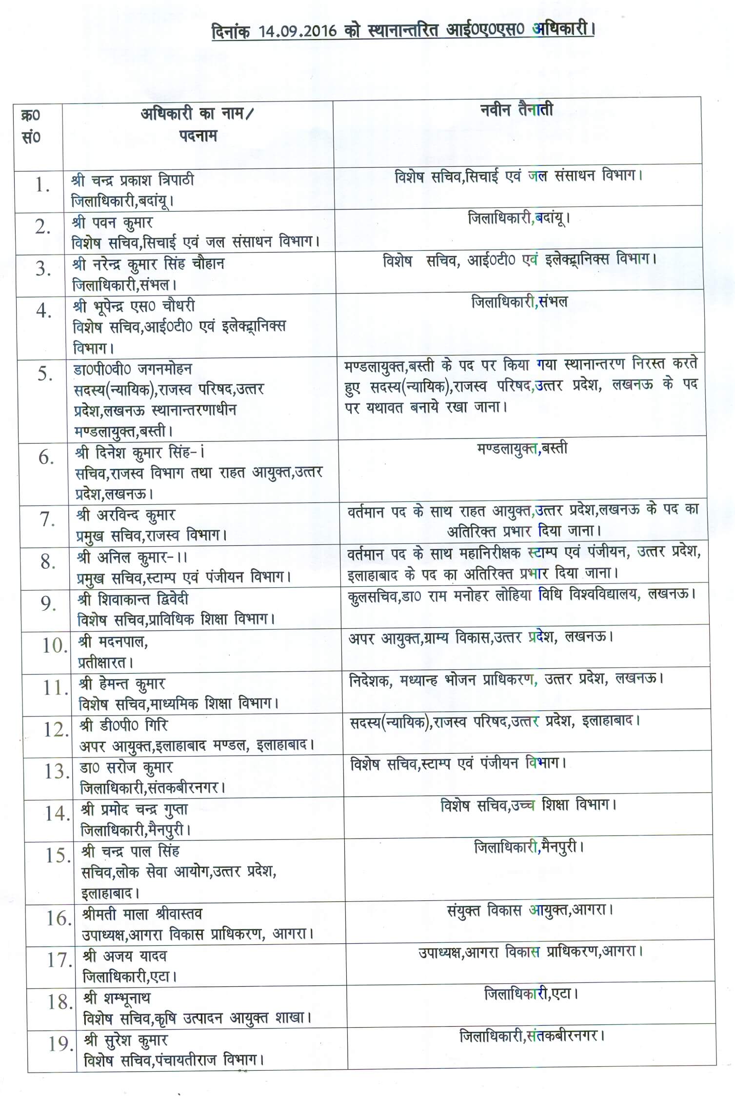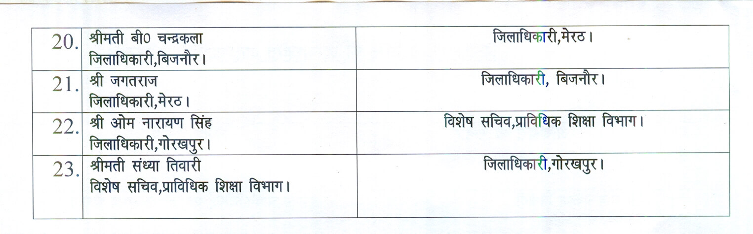 As many as 23 IAS officers have been transferred and posted locally in Uttar Pradesh. The officers name are: