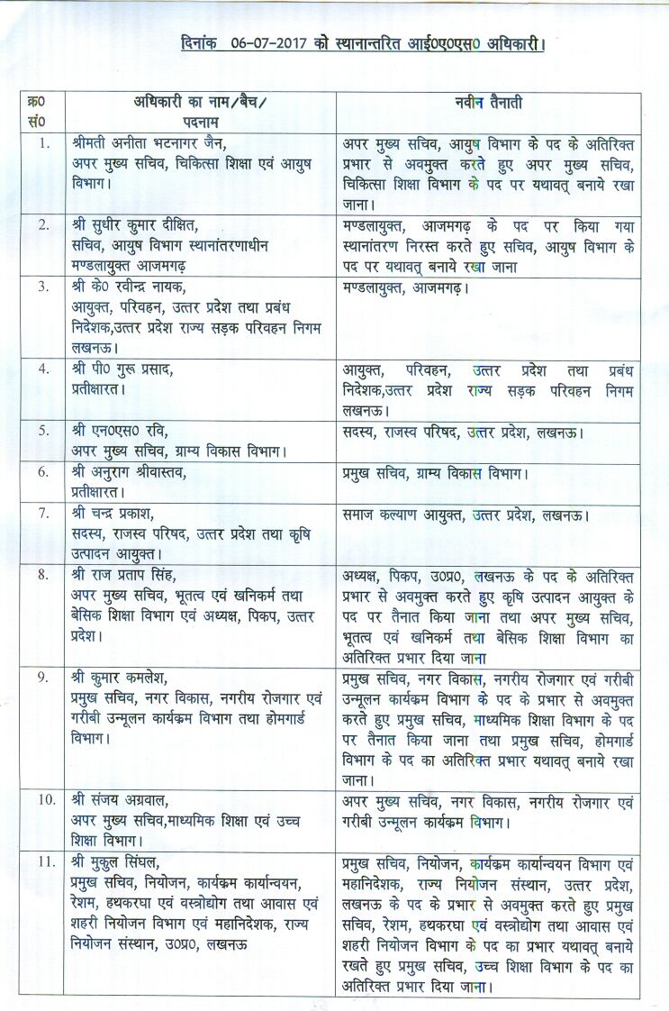 As many as 25 officers belonging to the Indian Administrative Services(IAS) have been transferred on 6 July 2017. Among these 25 IAS officers few have been given new addl responsibilities. Please find below the details of the officers.