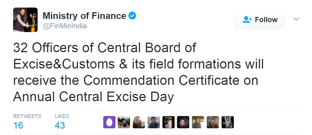 32 Officers of Central Board of Excise & Customs & its field formations will receive the Commendation Certificate on Annual Central Excise Day.