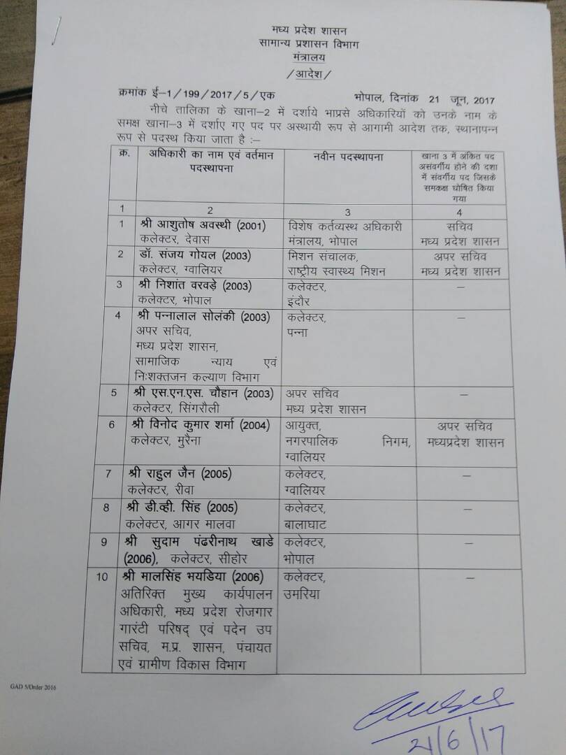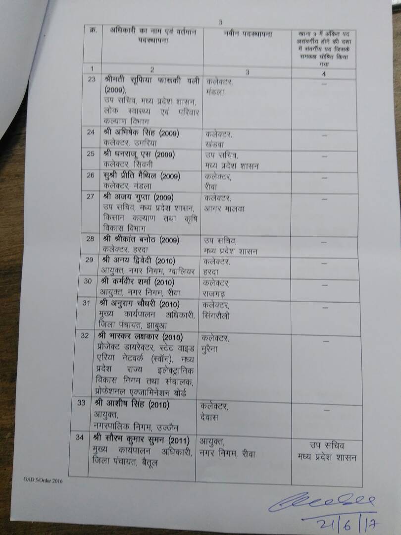 Bureaucracy 34 IAS officers transferred in Madhya Pradesh Last updated: June 22, 2017 8:18 am Parijat Tripathi Share SHARE As many as 34 IAS officers transferred in Madhya Pradesh. Please find the list of the officers below. Share This Article Email Copy Link Print Previous Article Centre is likely to appoint new Governors in July Next Article Arun Kumar Sinha appointed as MD, FDDI(Noida) Leave a Comment Leave a Reply Cancel replyYour email address will not be published. Required fields are marked *Comment * Name * Email * Website Save my name, email, and website in this browser for the next time I comment. Δ