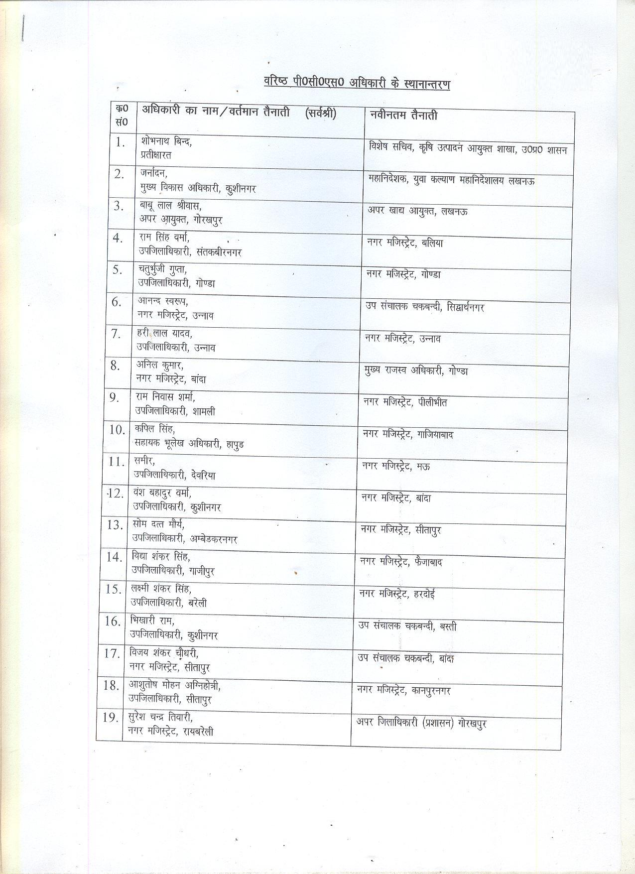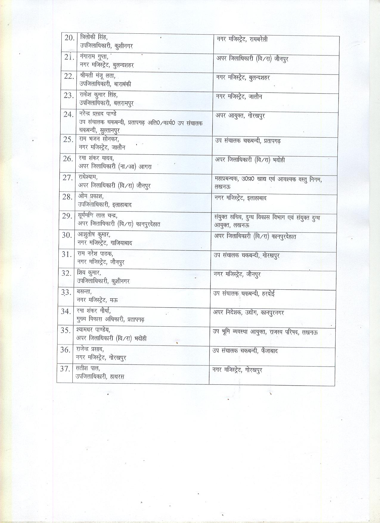 As many as 37 PCS officers are transferred and posted in different places of Uttar Pradesh. The officers who are posted in different places in Uttar pradesh are: