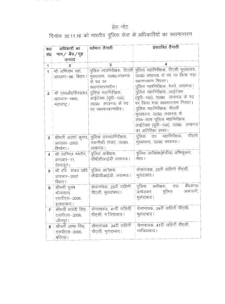 Bureaucracy 8 IPS officers Transferred in Uttar Pradesh Last updated: December 1, 2016 5:55 am Parijat Tripathi Share SHARE As many as 8 IPS officers have been transferred in Uttar Pradesh on 30 November 2016 . The details are in the list below :- Share This Article Email Copy Link Print Previous Article 10 IAS officers transferred in Mumbai Next Article The security system of three religious complexes including Taj Mahal will be strengthen: Debashish Panda Leave a Comment Leave a Reply Cancel replyYour email address will not be published. Required fields are marked *Comment * Name * Email * Website Save my name, email, and website in this browser for the next time I comment. Δ