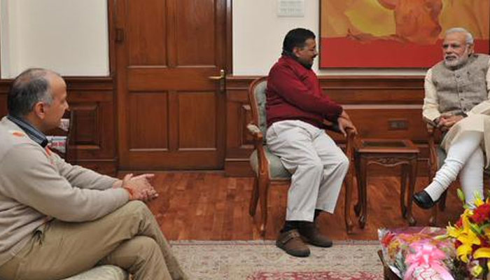 The meeting between Arvind Kejriwal and Narender Modi Prime Minister of India lasted for 20 minutes. Talking to News agency Manish Sisodia said Arvind Kejriwal and Prime Minister Narender Modi had ‘Chai pe Charcha’ over granting full Statehood for Delhi.Sisodia also said that the Prime Minister will not attend Kejriwal’s oath taking ceremony on 14th Feb 2015.