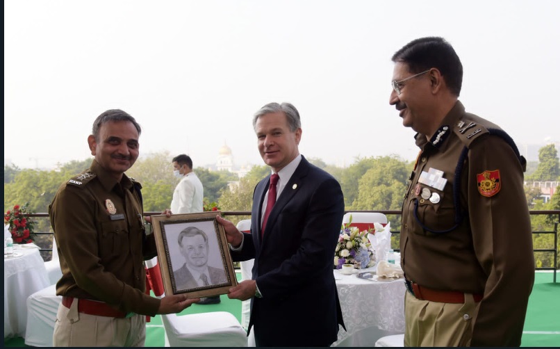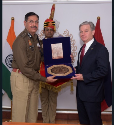 Christopher A Wray, Federal Bureau of Investigation, Director met Sanjay Arora, Police Commissioner of Delhi, at the Police headquarters in the Capital.