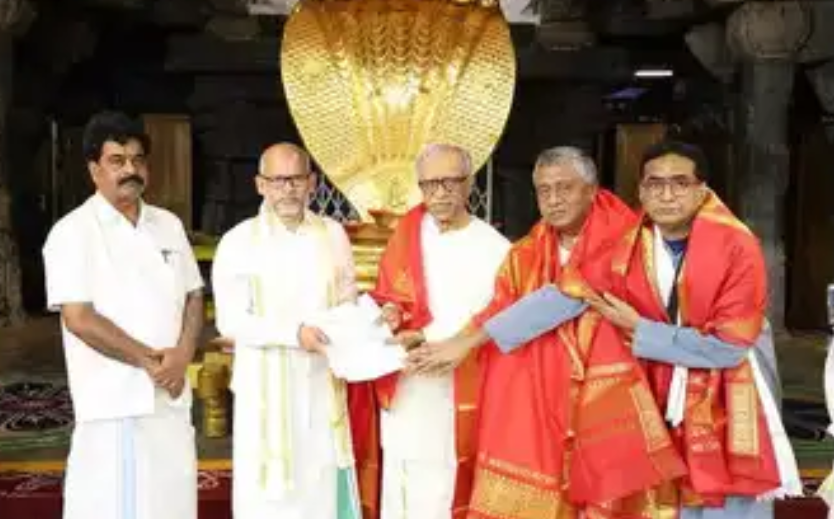 The late officer’s wishes were formally carried out by trustees M. Devaraj Reddy, V. Satyanarayana, and B. Lokanath, who handed over the property documents and cheques to TTD Additional Executive Officer Ch. Venkaiah Chowdary at the Ranganayakula Mandapam in the Tirumala temple complex on Thursday morning.