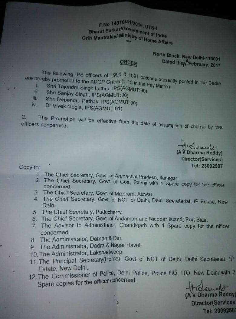 As many as four IPS officer of batch 1990 & 1991 who are presently in the cadre has been promoted to the ADGP grade(L15 in the pay matrix). The officers are: