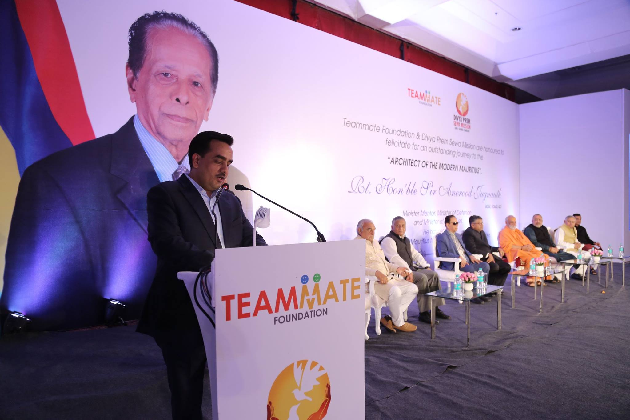 Teammate Foundation and Divya Prem Sewa Mission felicitated Rt Hon’ble Sir Anerood Jugnauth , GCSK, KCMG,QC , Minister Mentor , Minister of Defence and Minister of Rodrigues who has served Prime Minister of Mauritius for 6 times and President for 2 times for being a symbol of Mauritius Rapid Progress in the Global Erna.