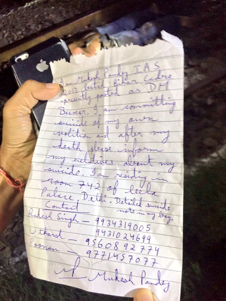 An IAS officer of 2012-batch Mukesh Pandey from Buxar district in Bihar, allegedly committed suicide by throwing himself in front of a train in Ghaziabad on Thursday.