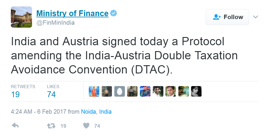 India and Austria signed today a Protocol amending the India-Austria Double Taxation Avoidance Convention (DTAC).
