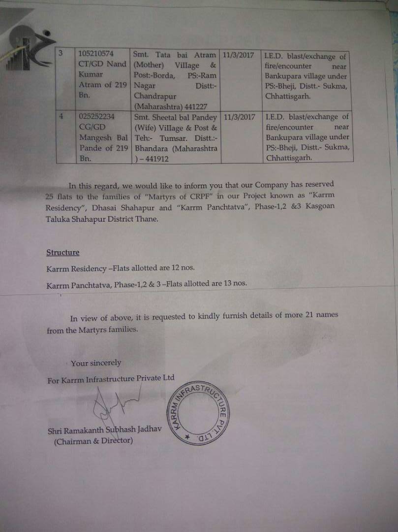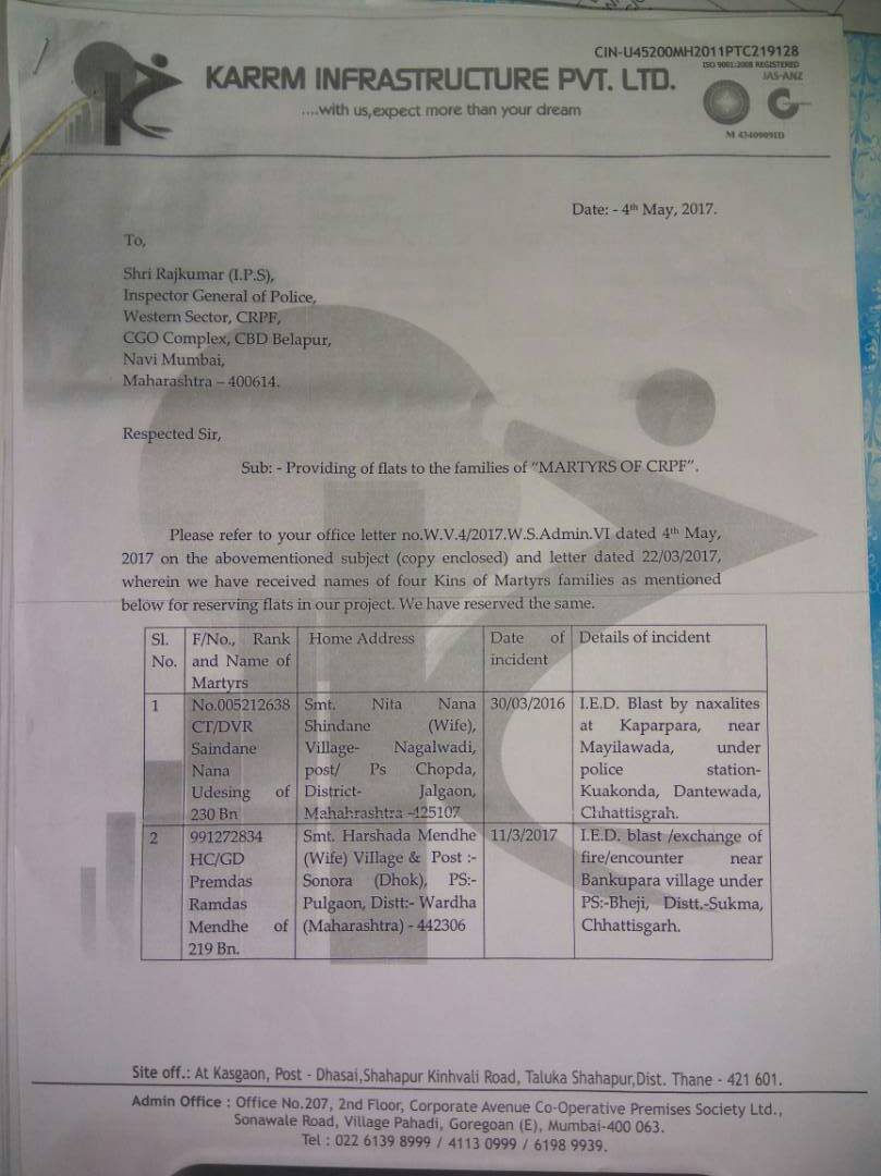 KARRM Infrastructure Pvt Ltd has donated 25 flats to CRPF Martyrs families in Thane. 4 flats have already been allotted. CRPF Fraternity is greatful for the noble gesture. Vivek Oberoi is the owner of KARRM Infrastructure Pvt Ltd.