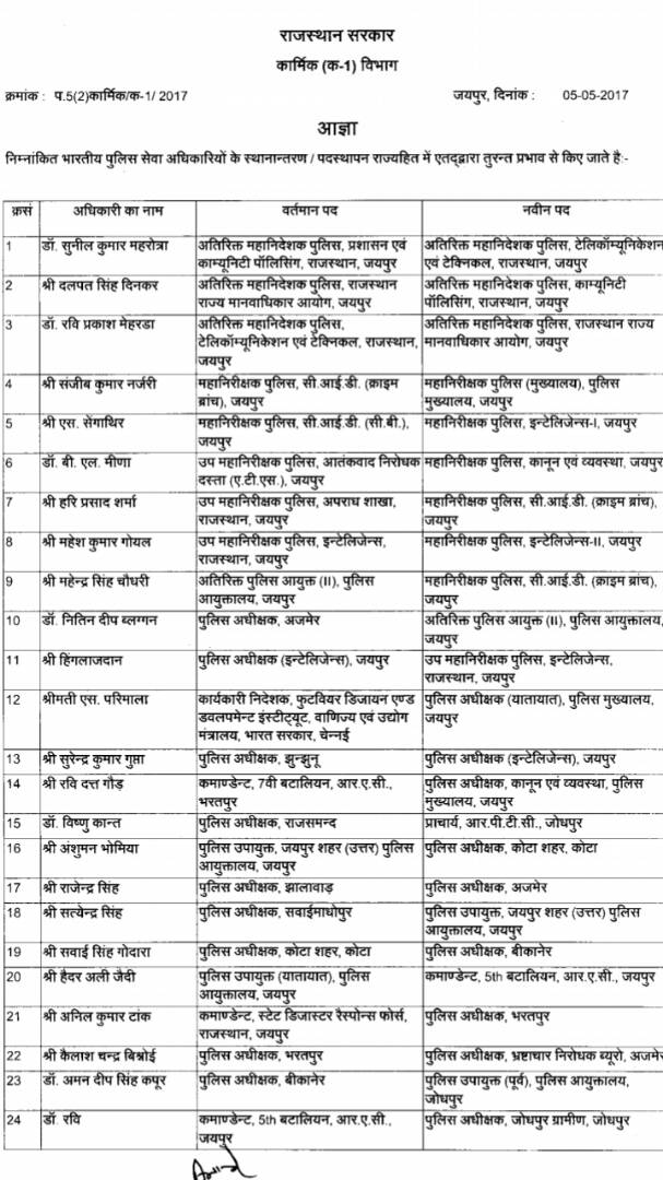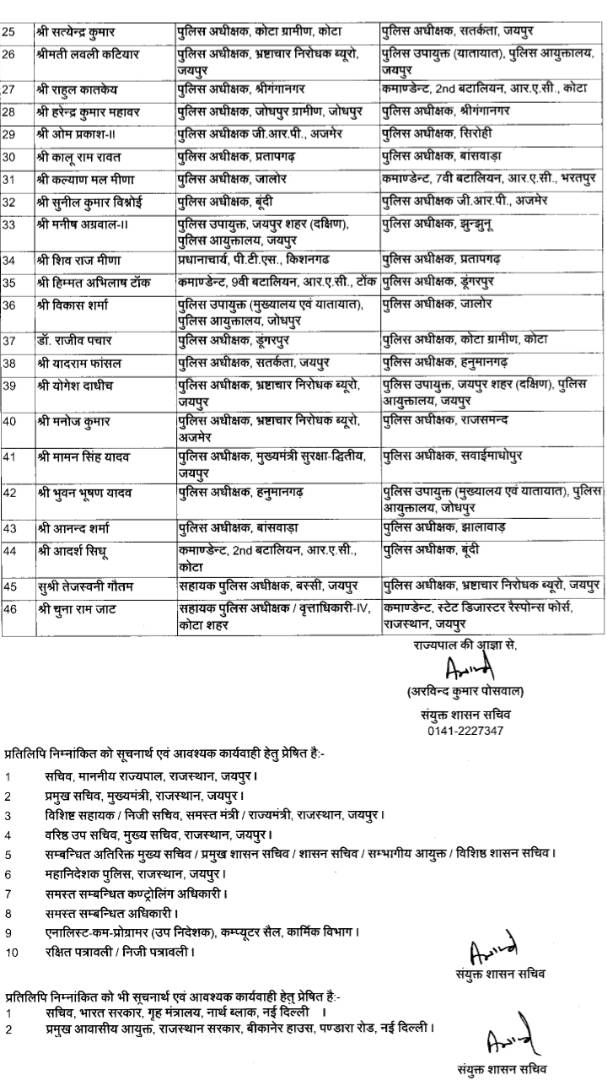 A major Bureaucratic reshuffle has happened in Rajasthan. 77 IAS and 46 IPS have been transferred. District collectors of 16 districts have been transferred. Please find the list below.