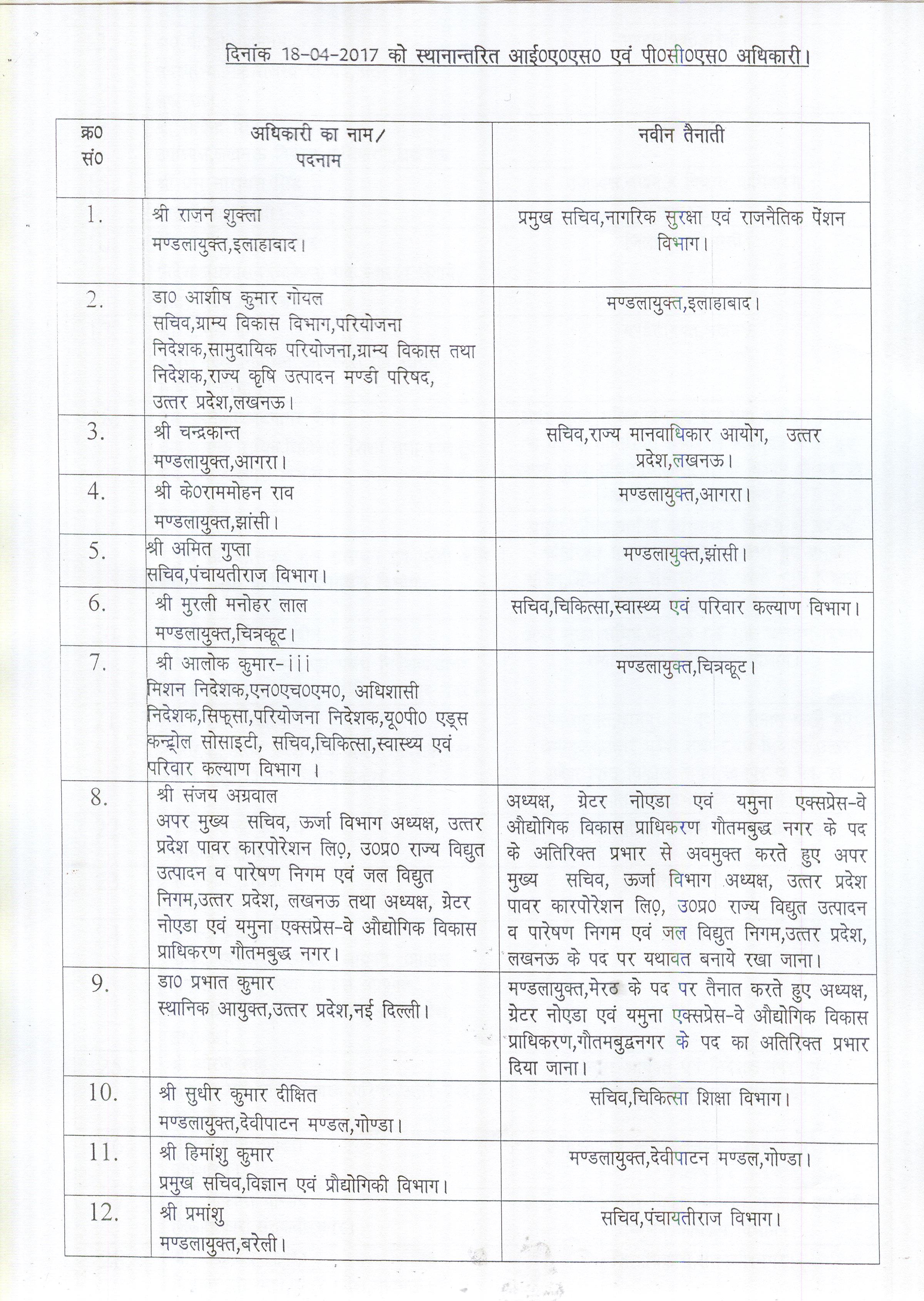 As NBSB informed you yesterday, Uttar pradesh government has transferred its 41 IAS officers today. District magistrates of many districts have been transferred. Anil Garg has been appointed new commissioner of Lucknow and Prabhu Narayan Singh is new LDA Vice chairman now. Rajiv Rautela is new DM of Gorakhpur and Aashish Goyal is commissioner Allahabad.