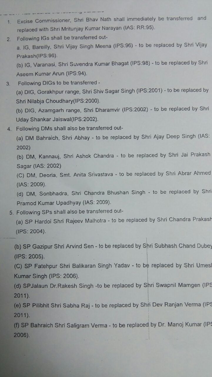 Major reshuffle of officers in Uttar Pradesh. The transfer details are like: