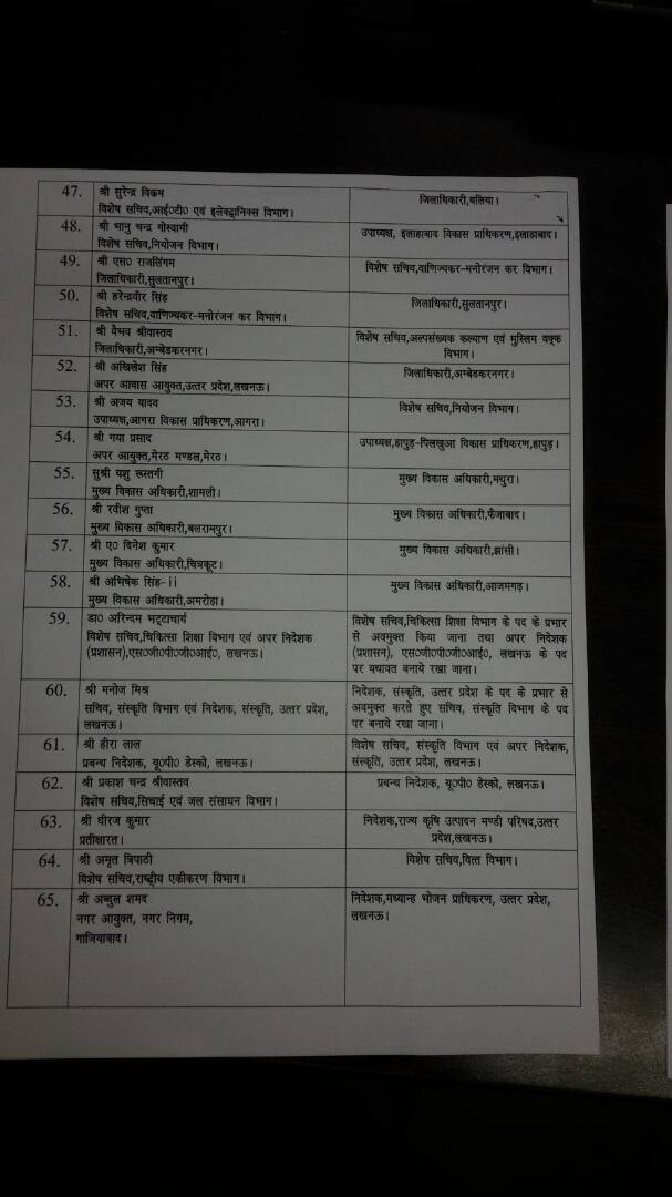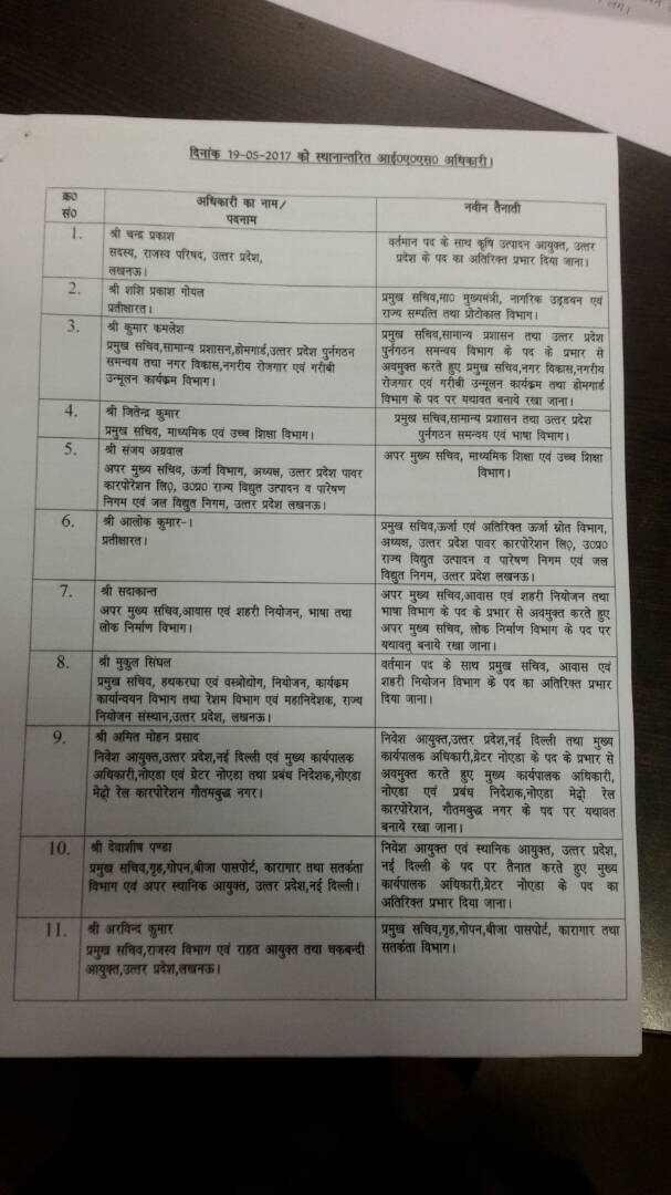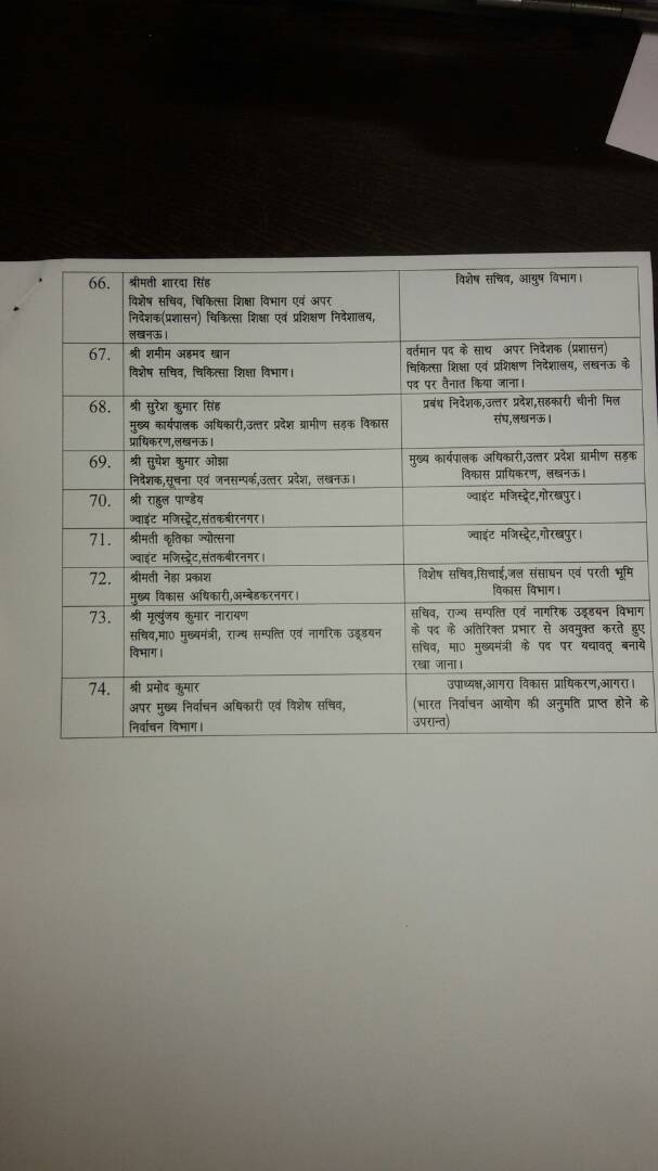 In a major Bureaucratic reshuffle in UP government has transferred 74 IAS officers today. Mr. Shashi Prakash Goyal has been appointed Principal Secretary to CM and Mr. Arvind Kumar has been appointed Principal Secretary (Home).