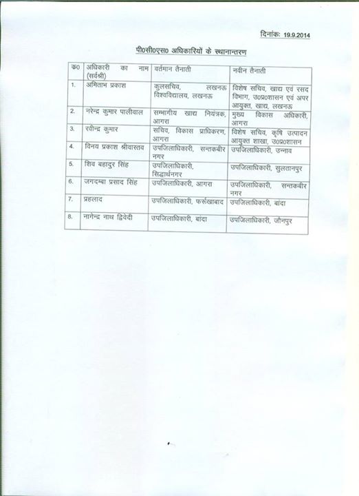 As many as 8 PCS officers have been transferred and posted locally y Uttar Pradesh Government. The transferred officers are:
