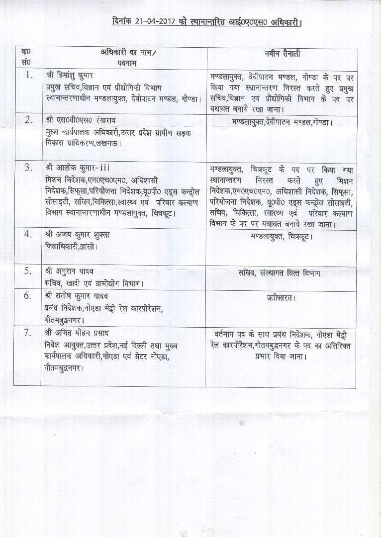 Bureaucracy Seven IAS officers transferred in Uttar Pradesh Last updated: April 21, 2017 4:23 pm Parijat Tripathi Share SHARE As many as 7 IAS officers have been transferred by UP government today. IAS Santosh yadav has been kept in waiting. Please find below list. Share This Article Email Copy Link Print Previous Article Sukhan Singh appointed new DGP of UP Next Article Ms. Rolley M. Varma appointed as Director, CVC Leave a Comment Leave a Reply Cancel replyYour email address will not be published. Required fields are marked *Comment * Name * Email * Website Save my name, email, and website in this browser for the next time I comment. Δ