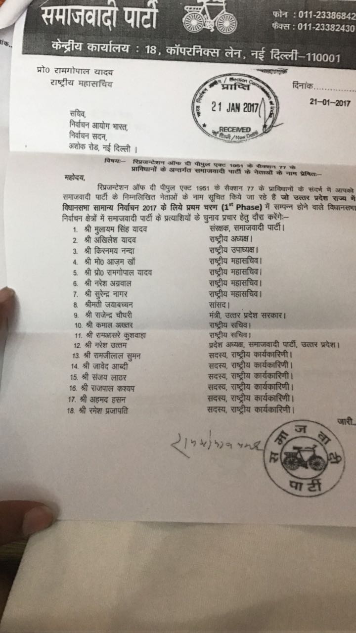 Samajwadi party has released its list of star campaigners but Shivpal yadav’s name is missing. Though Mulayam singh yadav name has been included as Guardian in this list. The names are