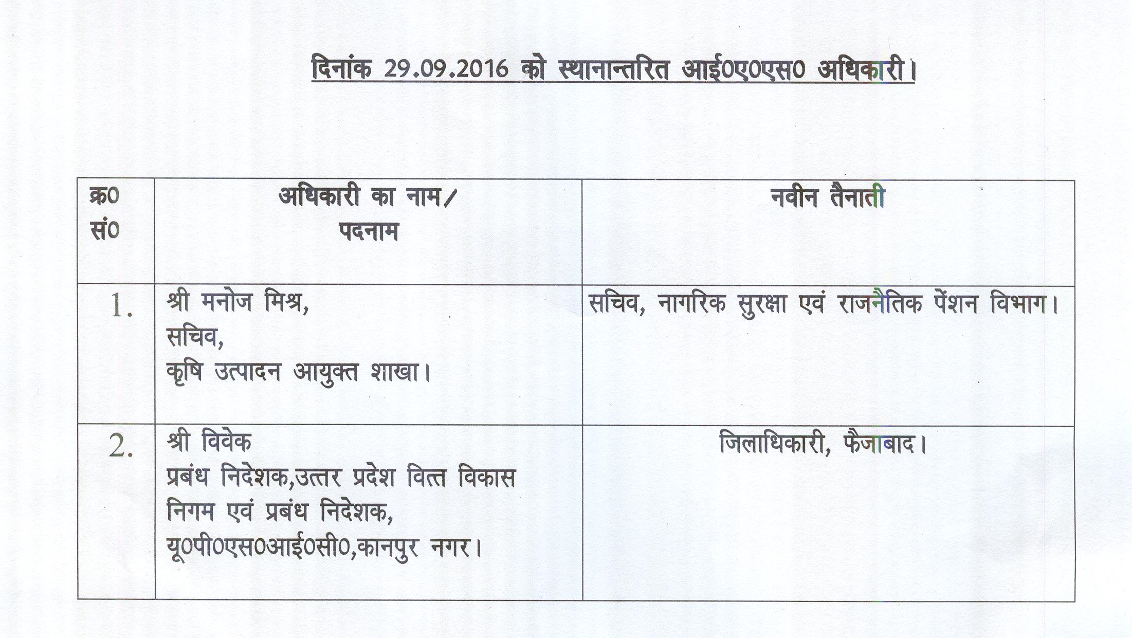 Bureaucracy Two IAS officers transferred in Uttar Pradesh Last updated: September 30, 2016 8:35 am Parijat Tripathi Share SHARE Two IAS officers have been transferred in the Uttar Pradesh. The officers are: Sh. Manoj Mishr Sh. Vivek Please click on the below image for the transfer details of the officers. Share This Article Email Copy Link Print Previous Article Shakti Sinha appointed as Director, NMML Next Article Four Income Tax officers get addl charges Leave a Comment Leave a Reply Cancel replyYour email address will not be published. Required fields are marked *Comment * Name * Email * Website Save my name, email, and website in this browser for the next time I comment. Δ