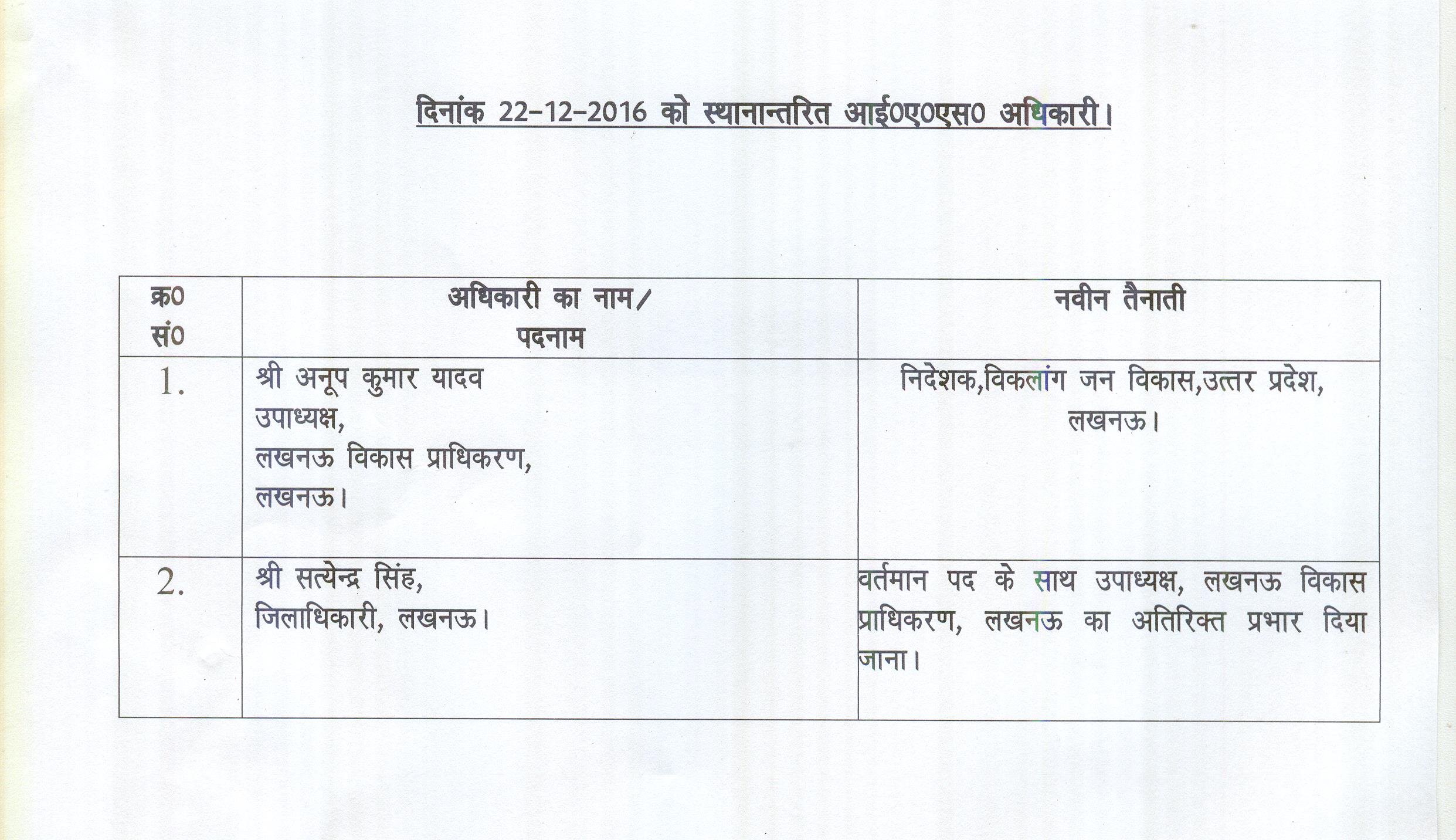 Bureaucracy Two IAS officers transferred in Uttar Pradesh Last updated: December 23, 2016 4:49 am Parijat Tripathi Share SHARE As many as two IAS officers have been transferred in Uttar Pradesh. Accordingly, Anup Kumar Yadav Satyendra Singh Please click on the below image to know the transfer details of the officers. Share This Article Email Copy Link Print Previous Article Former Coal Secretary, others put on trial in coal scam Next Article Two IIS officers empanelled for the promotion to Higher Grade Leave a Comment Leave a Reply Cancel replyYour email address will not be published. Required fields are marked *Comment * Name * Email * Website Save my name, email, and website in this browser for the next time I comment. Δ